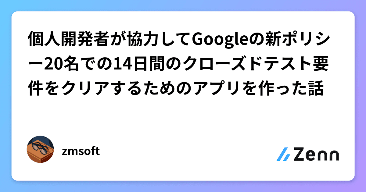 • クローズド テストを 20 人以上のテスターで、14 日間以上実施する
